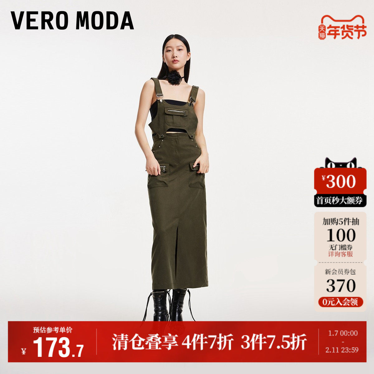 Vero Moda奥莱半身裙秋季新款两件套可拆背带休闲街头风优雅