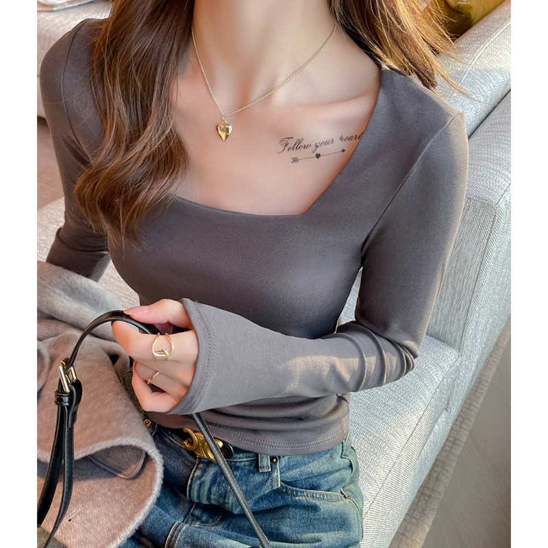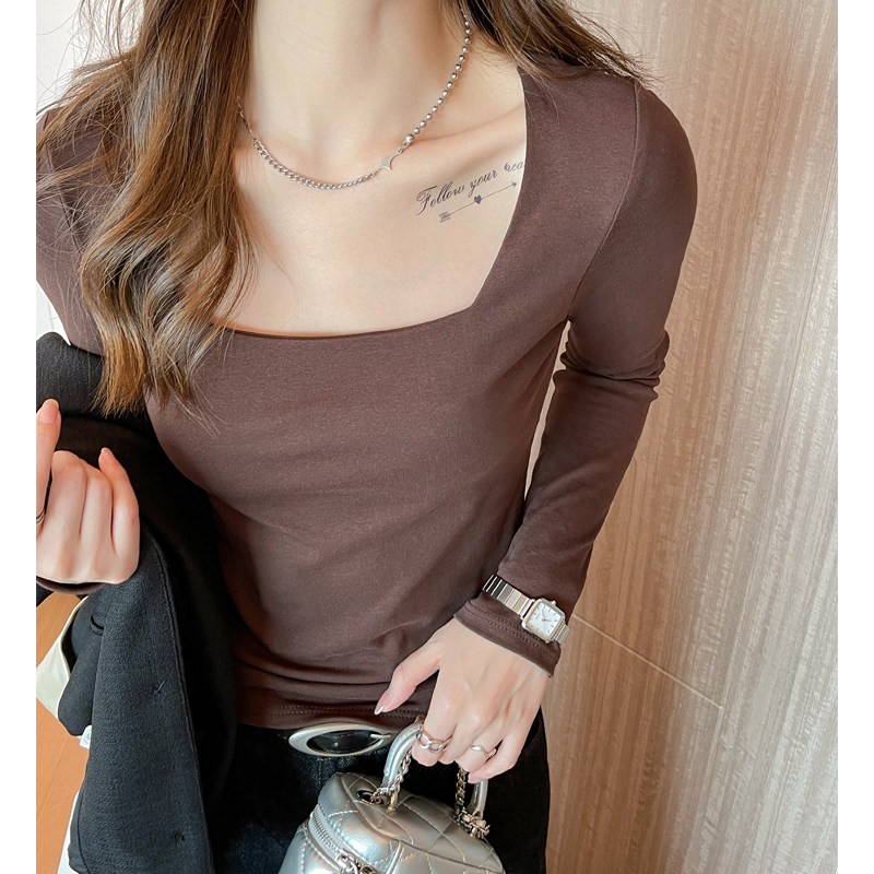 白色方领打底衫女春秋冬款2025新款低领内搭修身显瘦上衣纯棉体恤