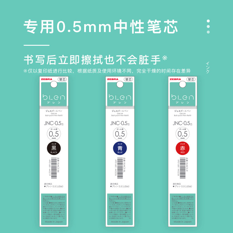 日本zebra斑马笔芯JNC-0.5速干blen减震笔JJZ66按动中性笔替芯减振笔jnc05替换黑笔芯