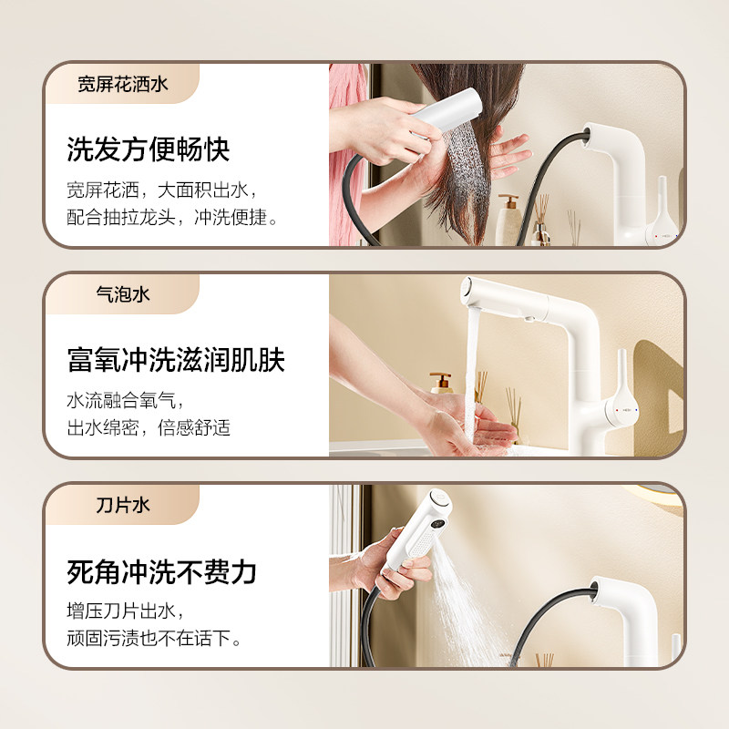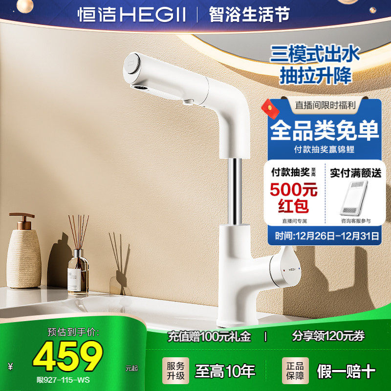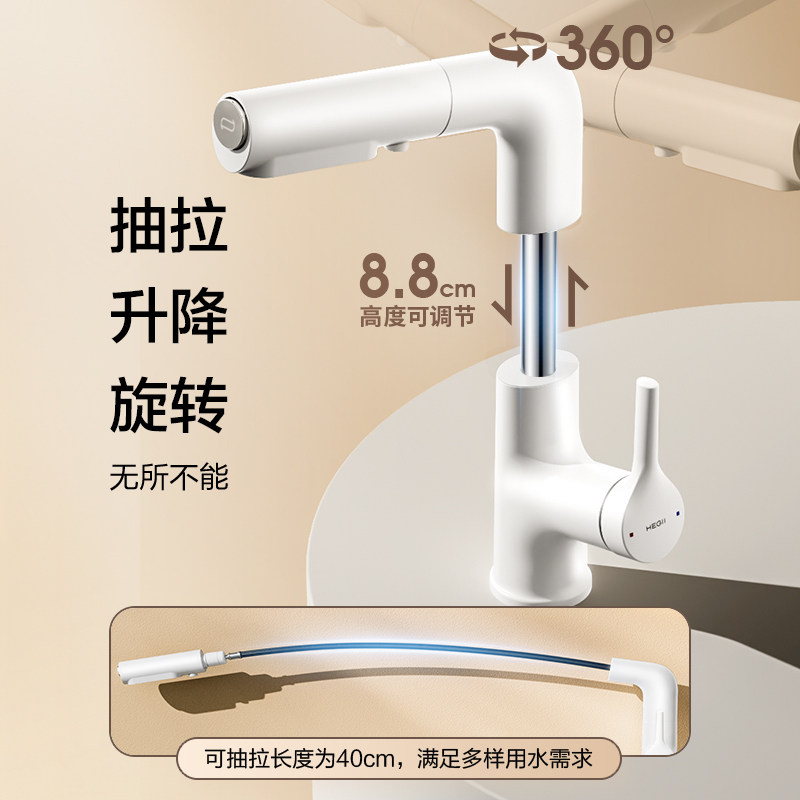HEGII/恒洁面盆龙头抽拉式浴室洗手盆台盆冷热水龙头家用白色升降