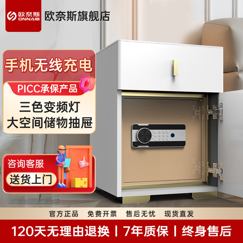 欧奈斯保险柜家用小型抽屉床头柜保险箱一体智能WiFi无线充电USB防盗全钢办公室文件柜指纹密码2025新款