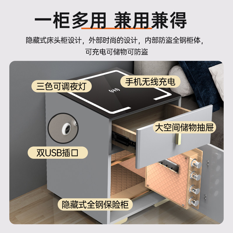 明星推荐 钢木结合智能防盗保险箱床头柜