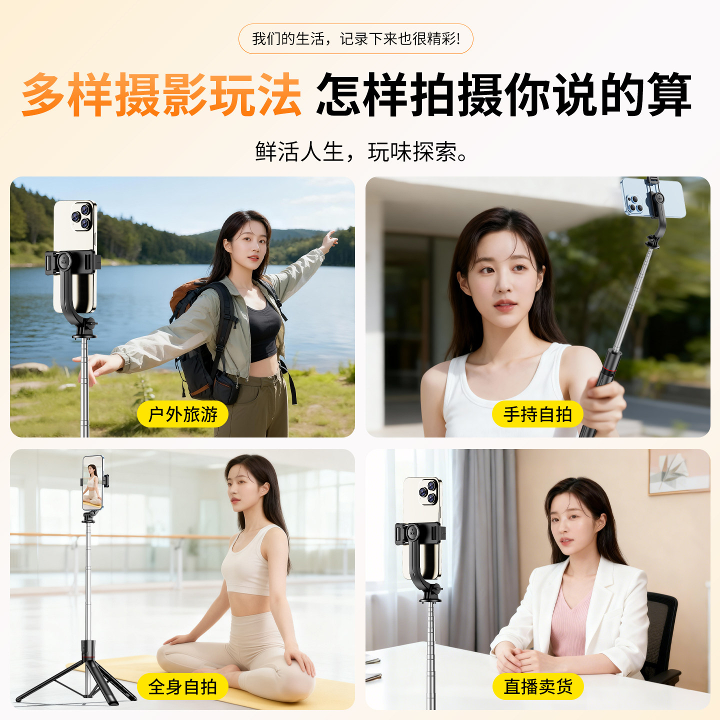 靓点拍2025新款自拍杆落地三脚架旅游便携手机通用拍照防抖支架自拍神器360度旋转演唱会直播手持拍摄架