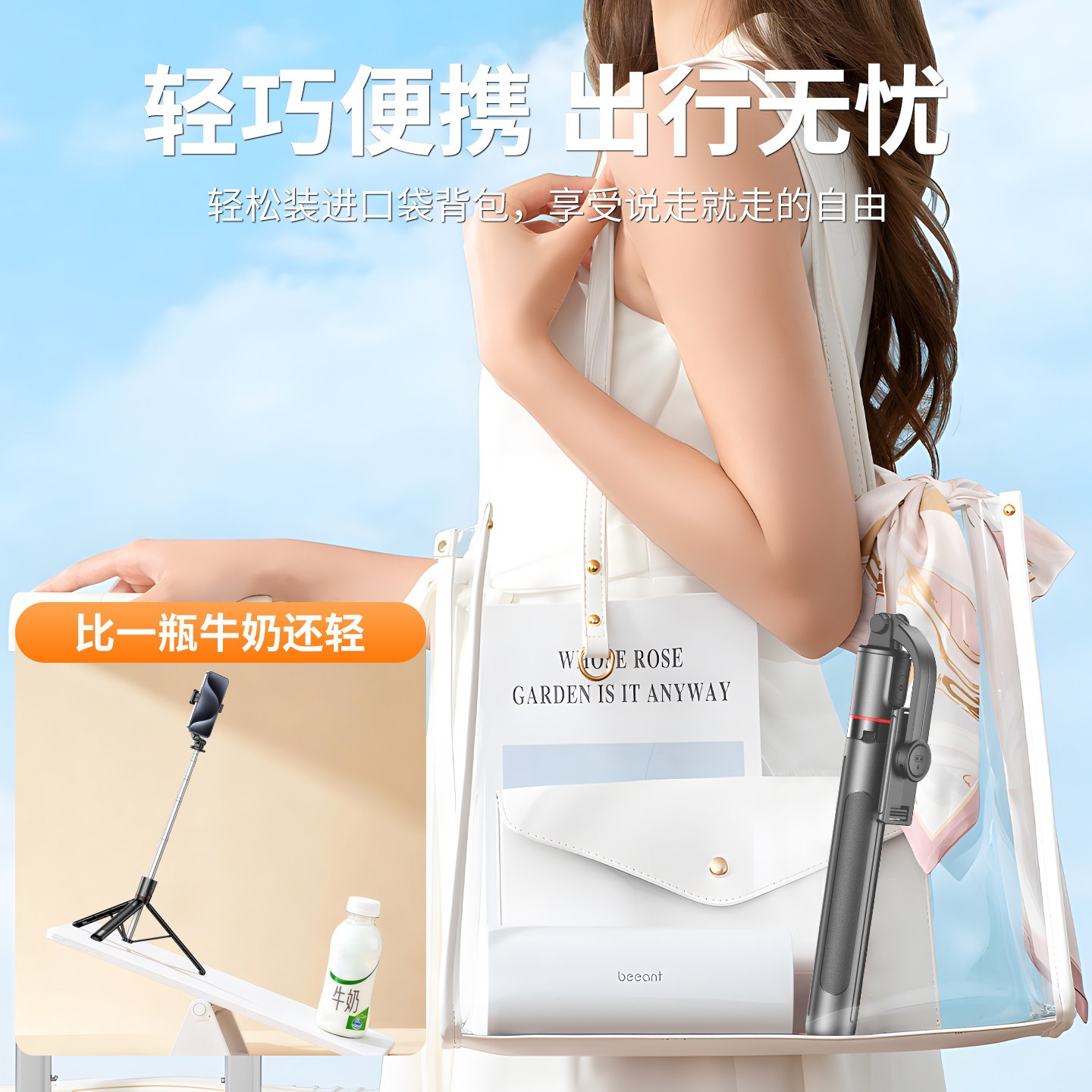 品胜小轻自拍杆迷你旅游便携2025新款通用手机自拍神器360度旋转落地三脚架手持mini蓝牙超轻自拍vlog拍照24