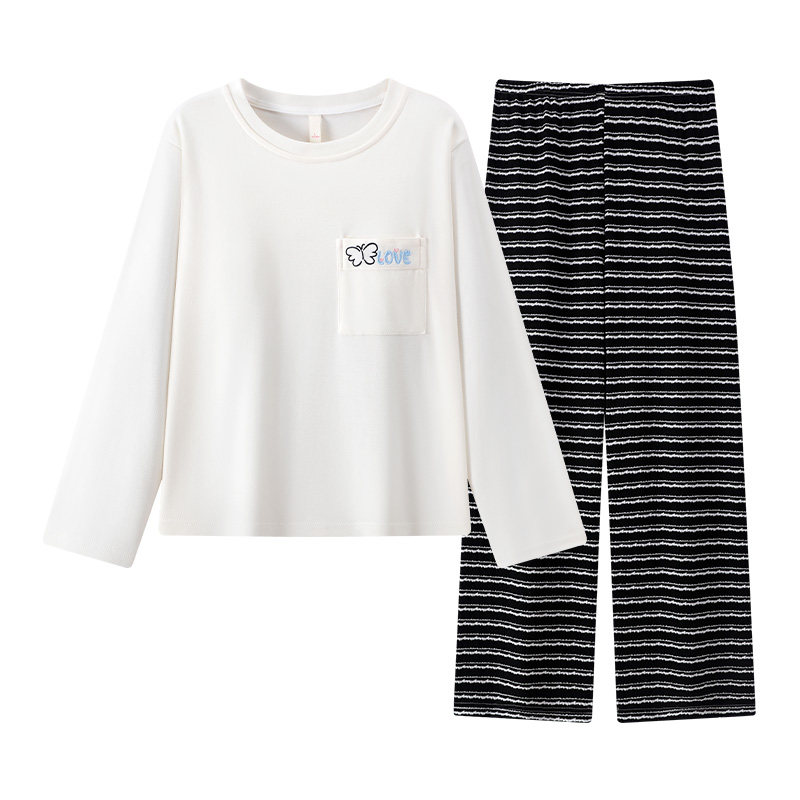 安比斯情侣睡衣舒适纯棉秋季女长袖男女同款休闲家居服套装可出门