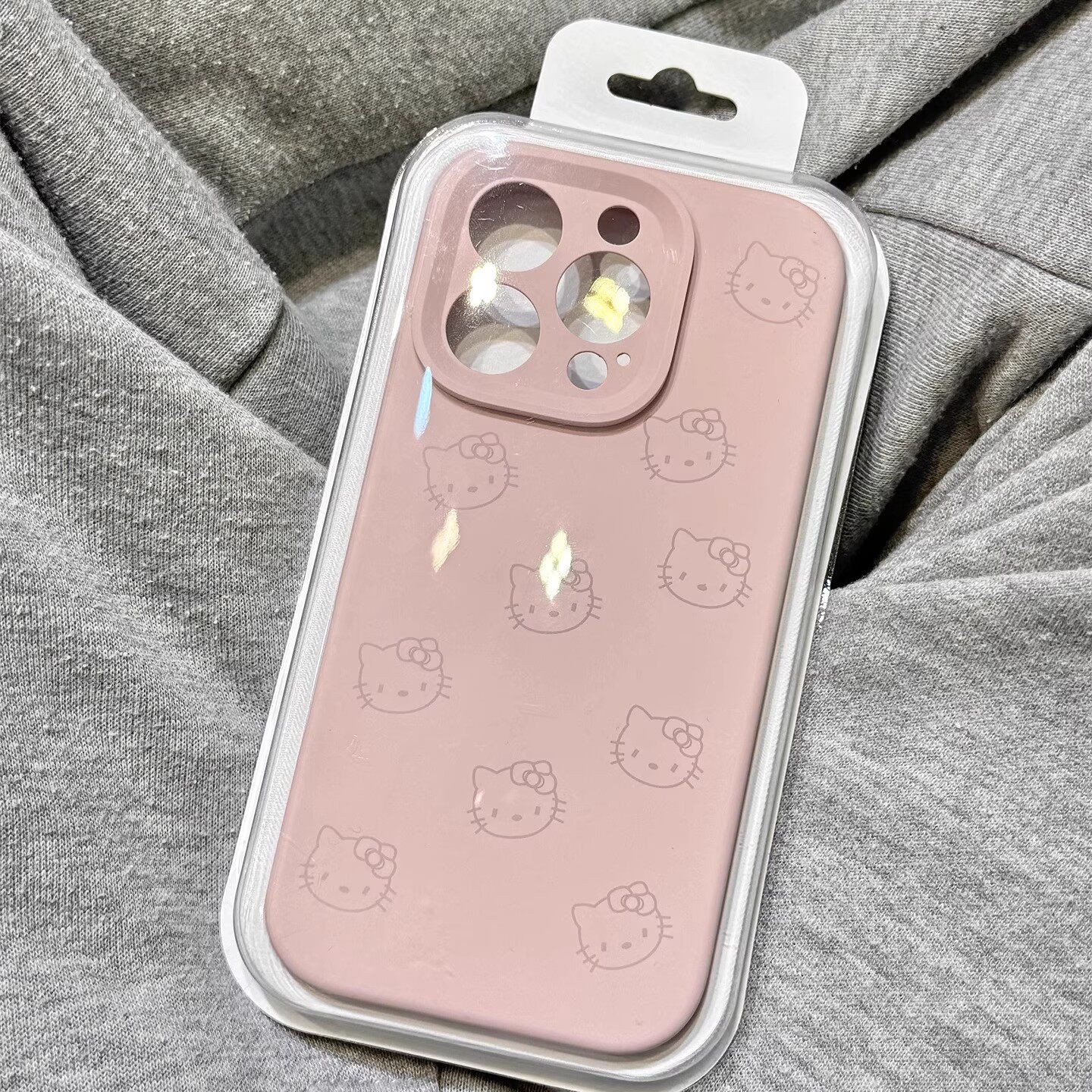 灰粉色线条kitty猫液态硅胶适用于iphone17promax苹果16手机壳15新款14pro女13少女心17Air全包创意防摔软壳