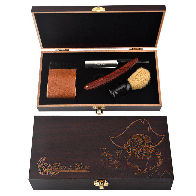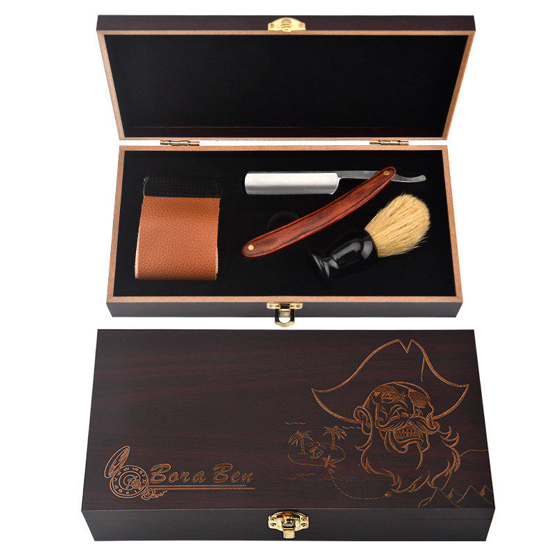 木盒套装美发男士毛刮胡刀架复古老式剃刀修毛边修眉剃须刮脸刀