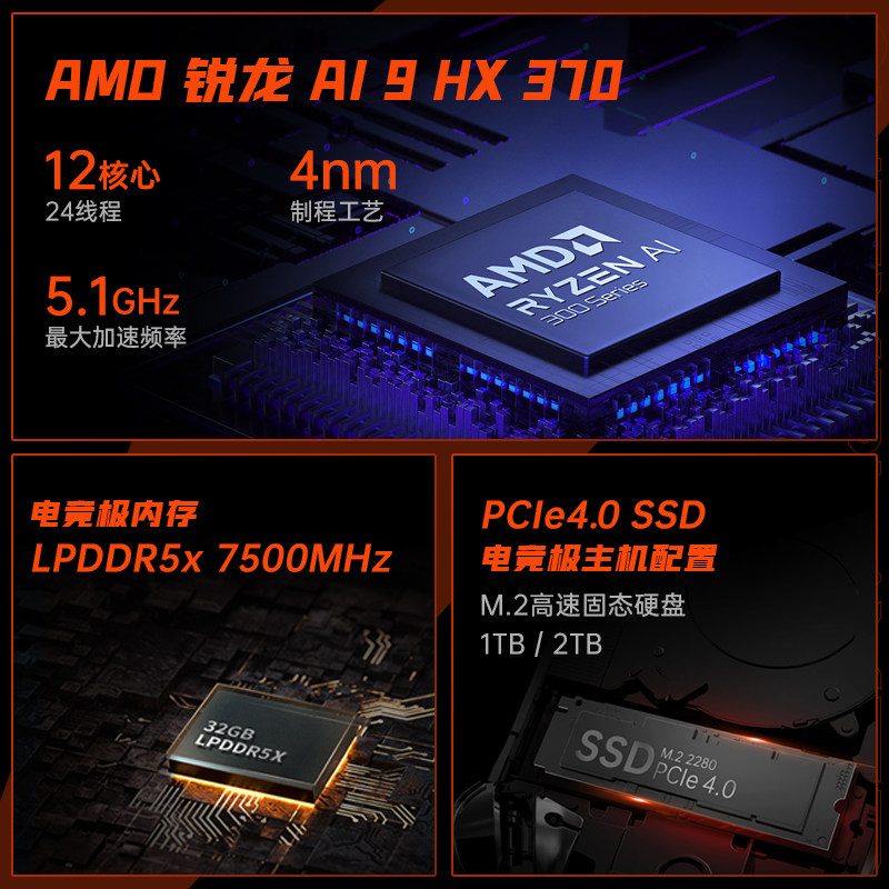 壹号本OneXPlayer 飞行家F1 Pro AMD AI 9 HX 370游戏掌机Steam单机网游端游Win11掌上游戏机官方旗舰店