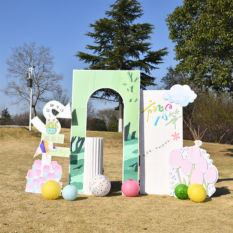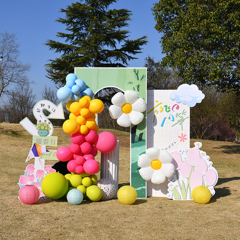 幼儿园春天装饰户外春游气球背景kt板布置背景板春季场景