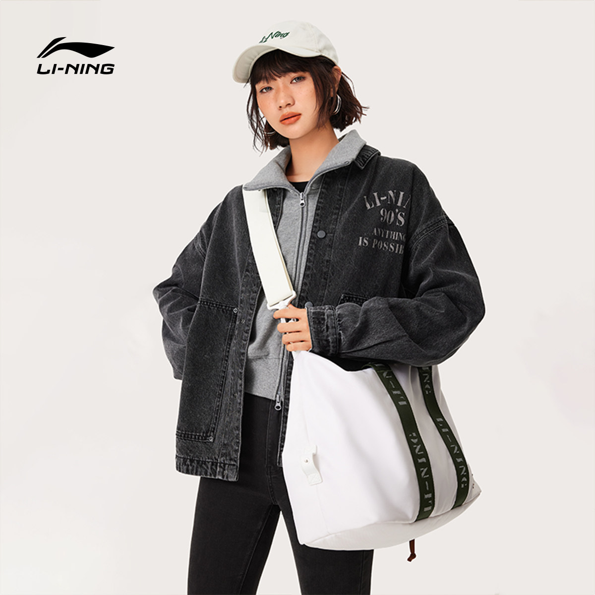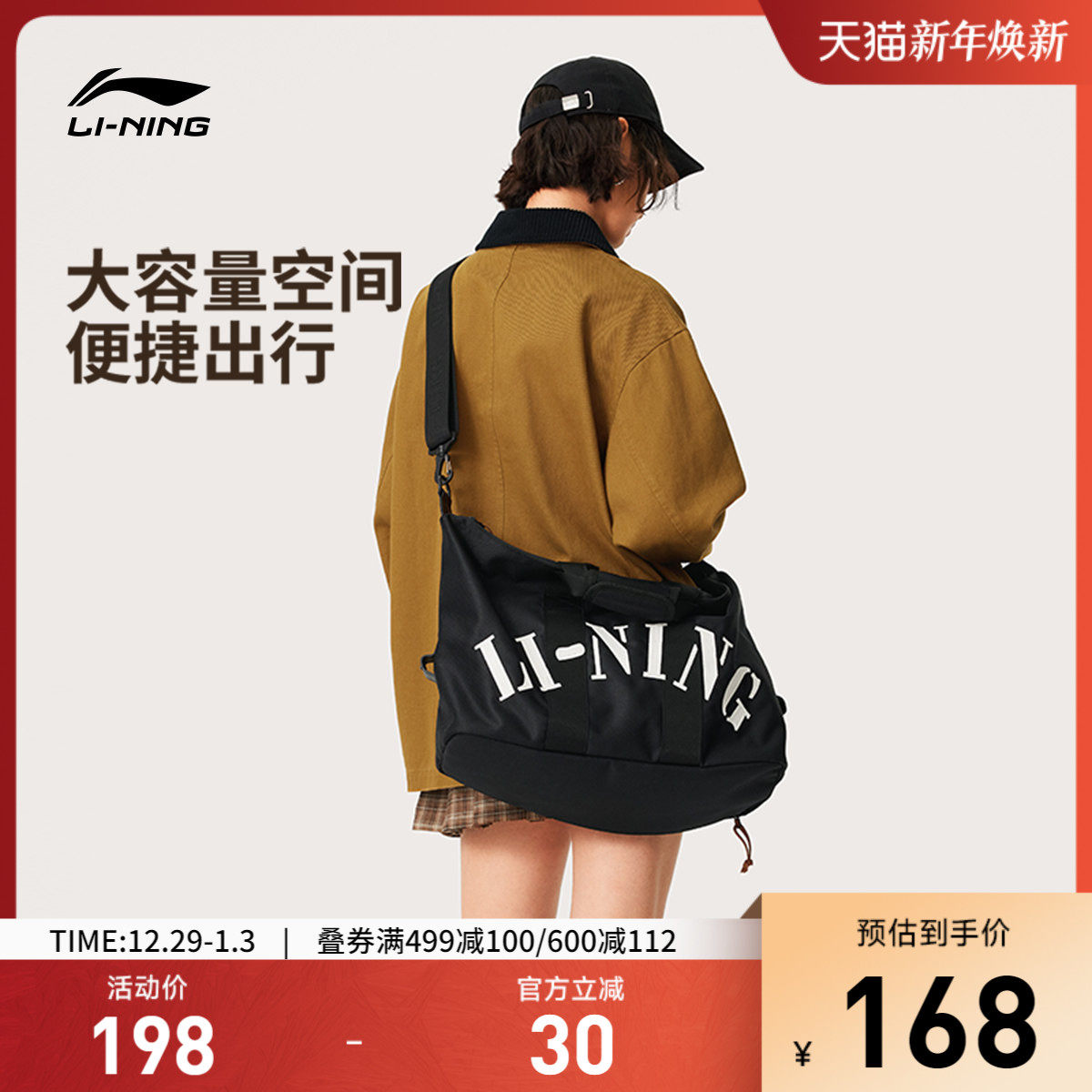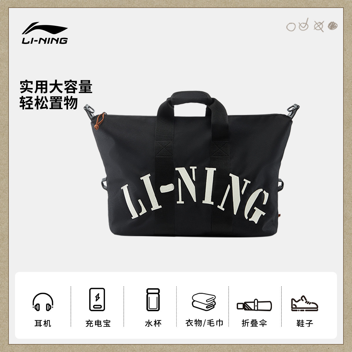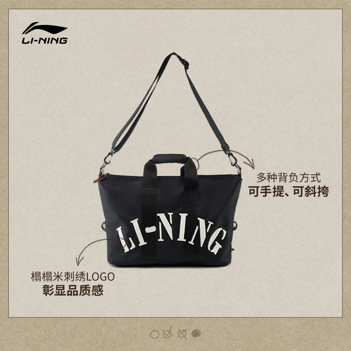 李宁桶包男女斜挎包新款单肩包手提拎包大容量休闲运动休闲旅行包