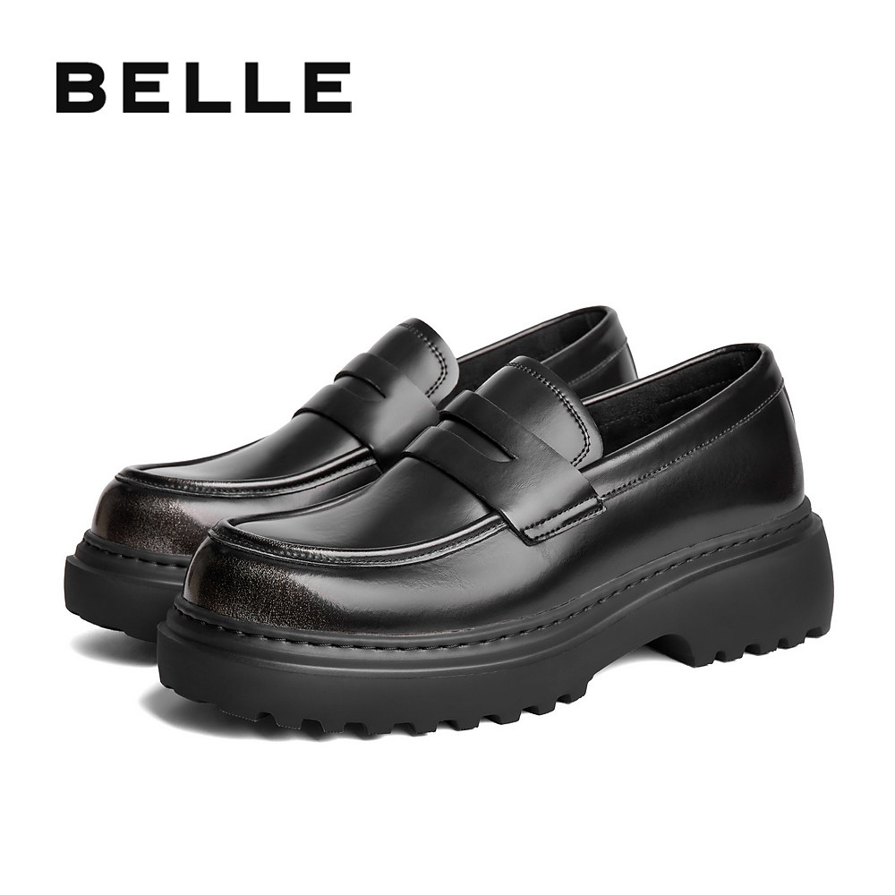 周翊然同款百丽男鞋厚底增高德比婚鞋商务正装乐福休闲皮鞋A1696D