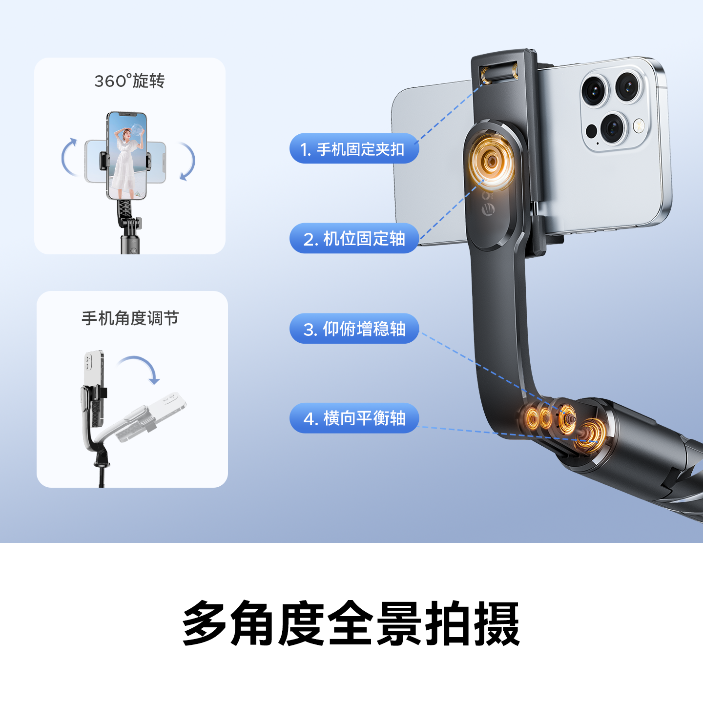 叠品A21P防抖手机户外拍摄支架自拍杆2025新款通用三脚架360旋转直播拍照神器抖音专用蓝牙一体式金属稳定器
