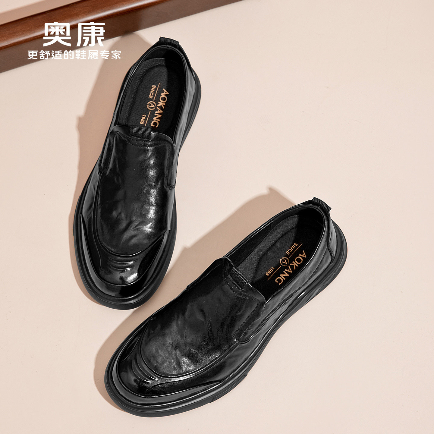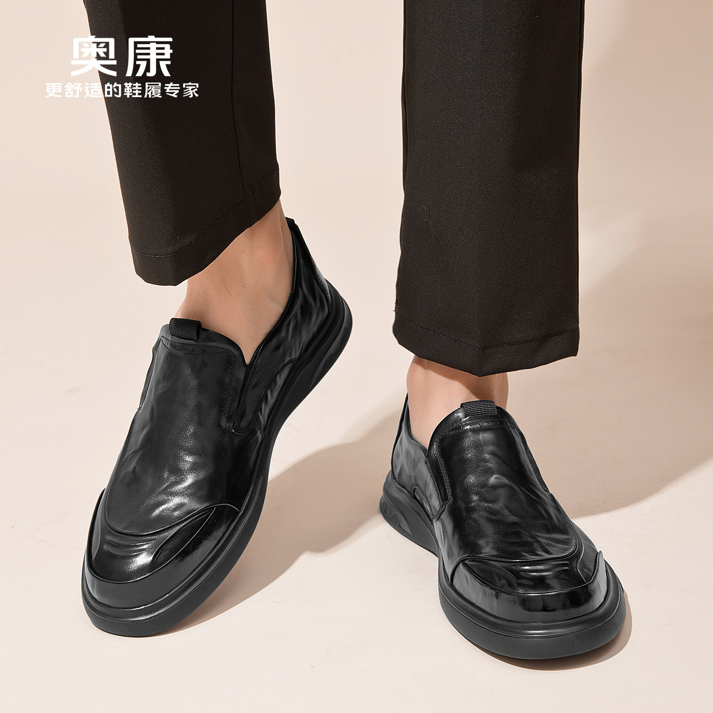 奥康官方男鞋春秋季真皮商务休闲皮鞋时尚套脚平底脚蹬舒适爸爸鞋