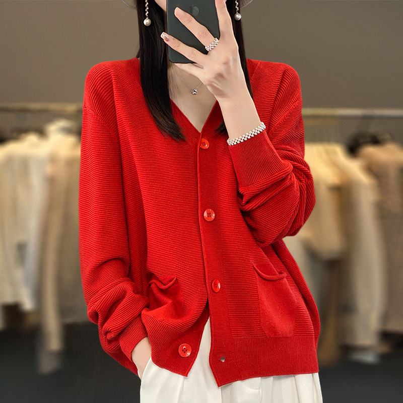 新款羊毛开衫外套女针织打底衫V领2025年春季羊绒外搭短款毛衣女