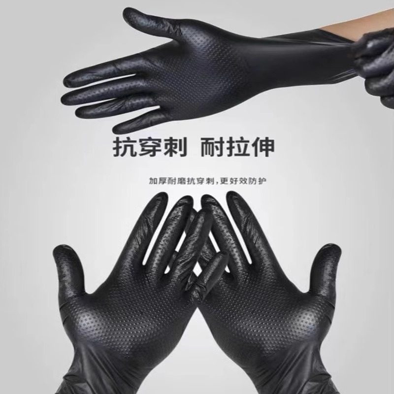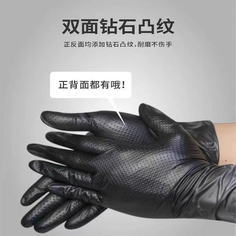 特厚一次性手套丁腈橡胶钻石纹防滑耐磨耐油工业机械汽修户外作业