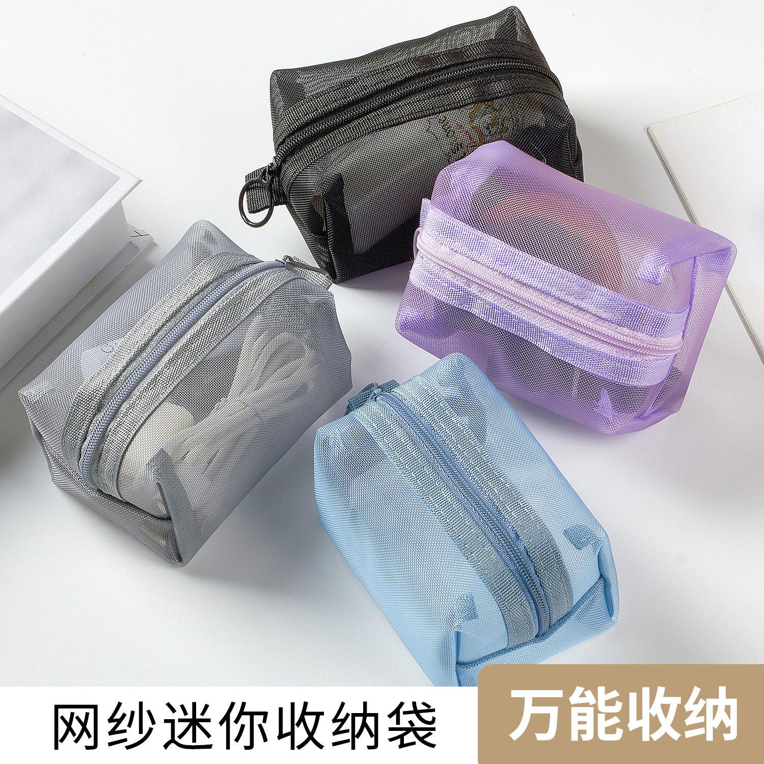 网纱迷你收纳袋零钱包小文件袋透明钥匙包身份证公交卡包便携尼龙化妆品耳机大容量分装网格拉链袋小巧文具袋