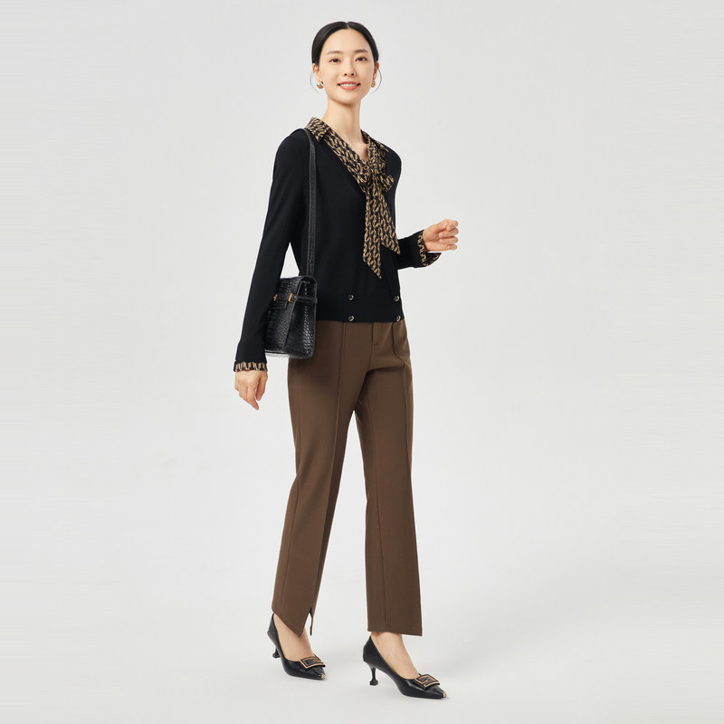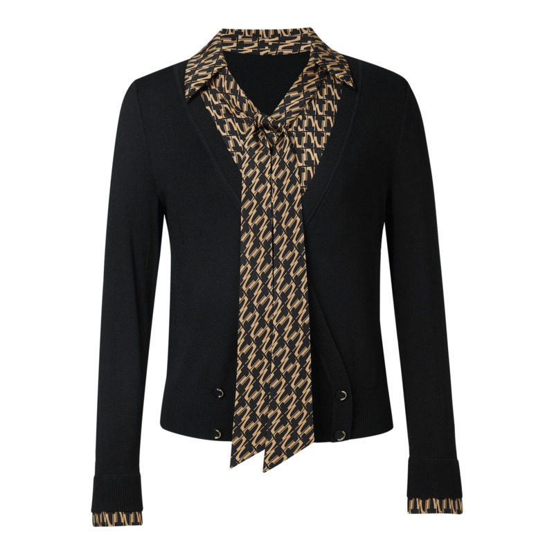 【桑蚕丝】娜尔思印花领结毛针织衫修身显瘦2025年秋季新款上衣女