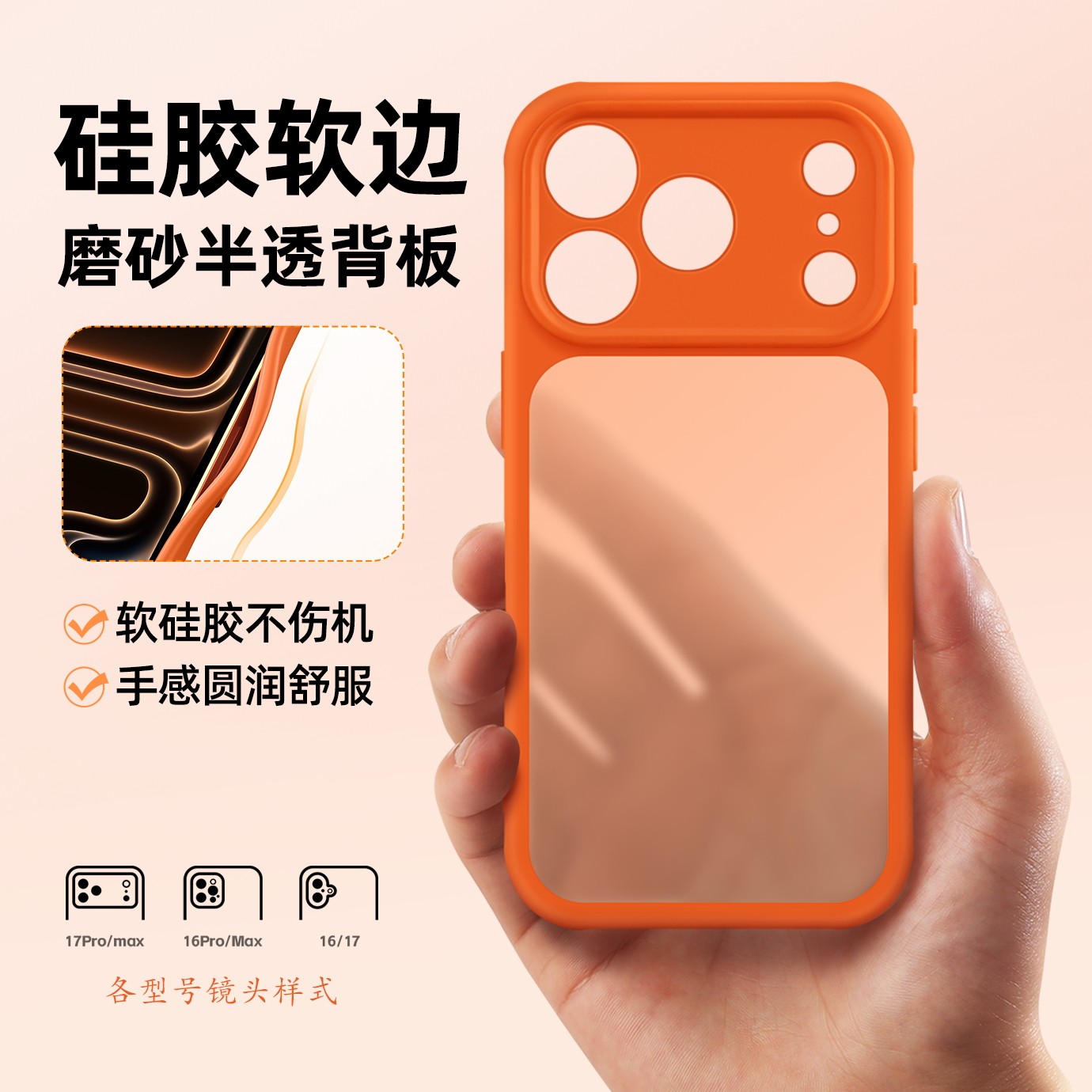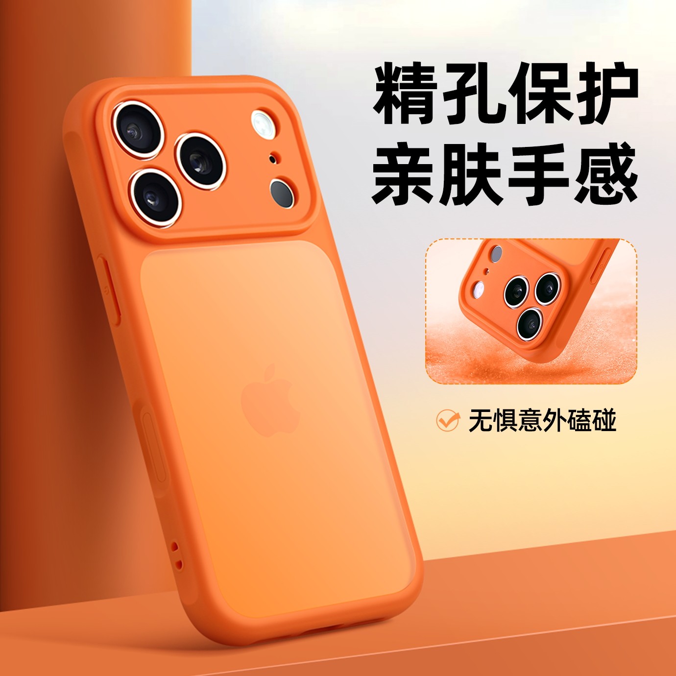 镜头精孔AI拍照键全包适用苹果iPhone17pro手机壳17promax肤感半透磨砂17气囊防摔16max硅胶软边保护套橙蓝新