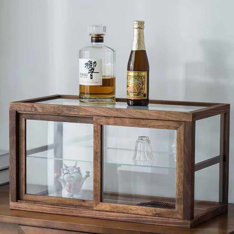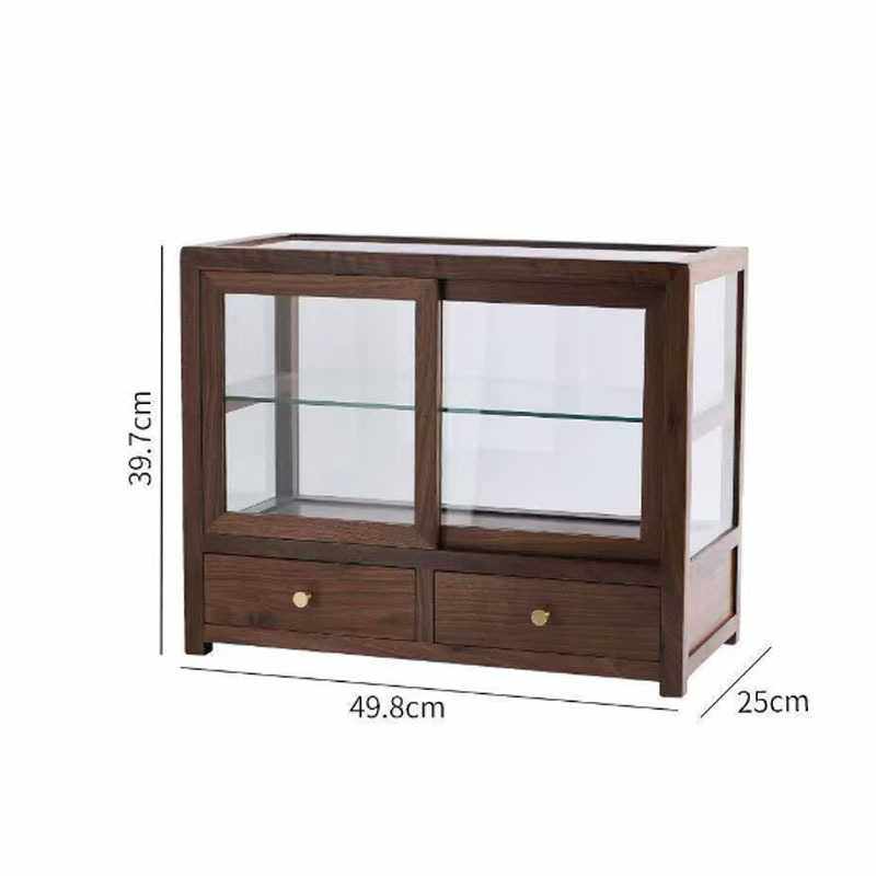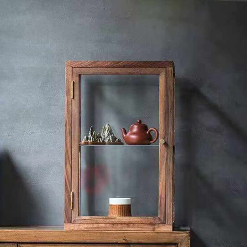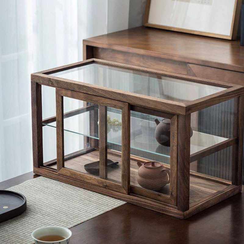 茶器收纳柜玻璃茶具展示柜黑胡桃木桌面实木柜子置物架杯具茶器柜