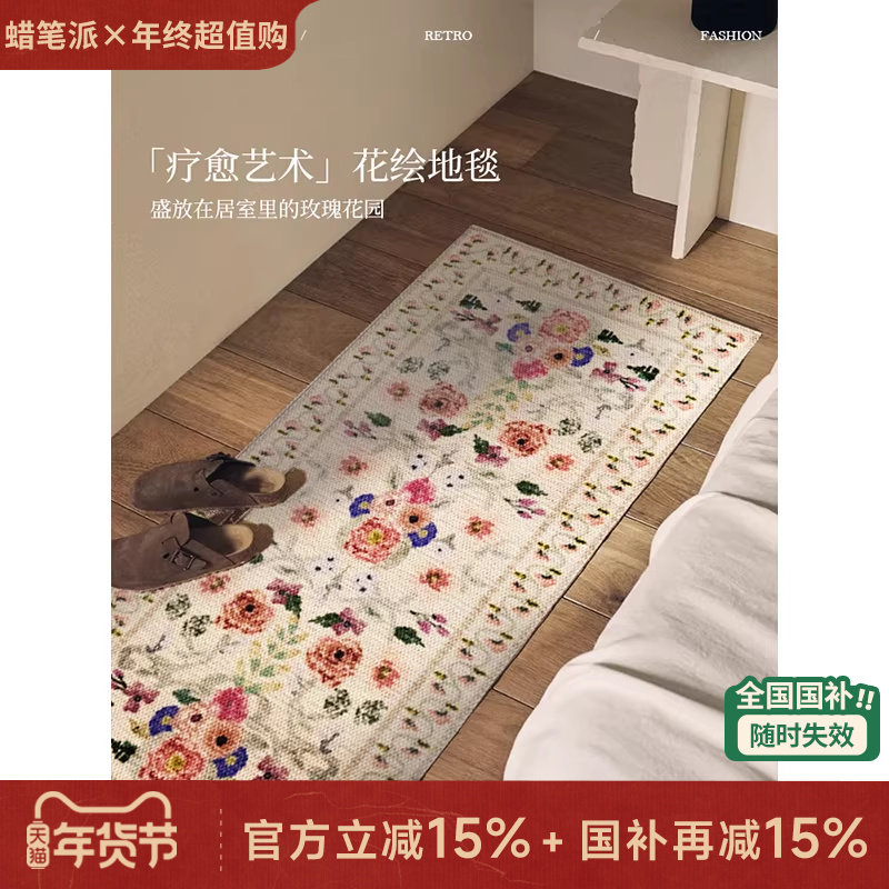 【国补再减15%】蜡笔派芙拉羊毛地毯法式田园高级氛围卧室床边毯