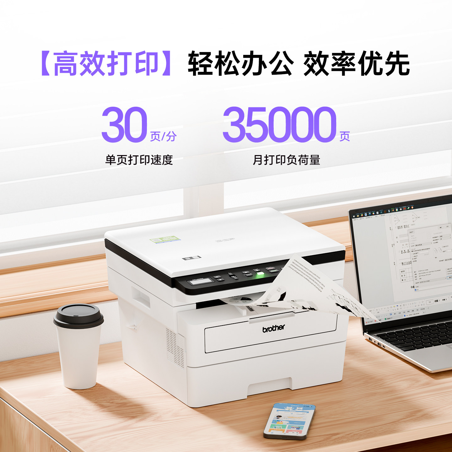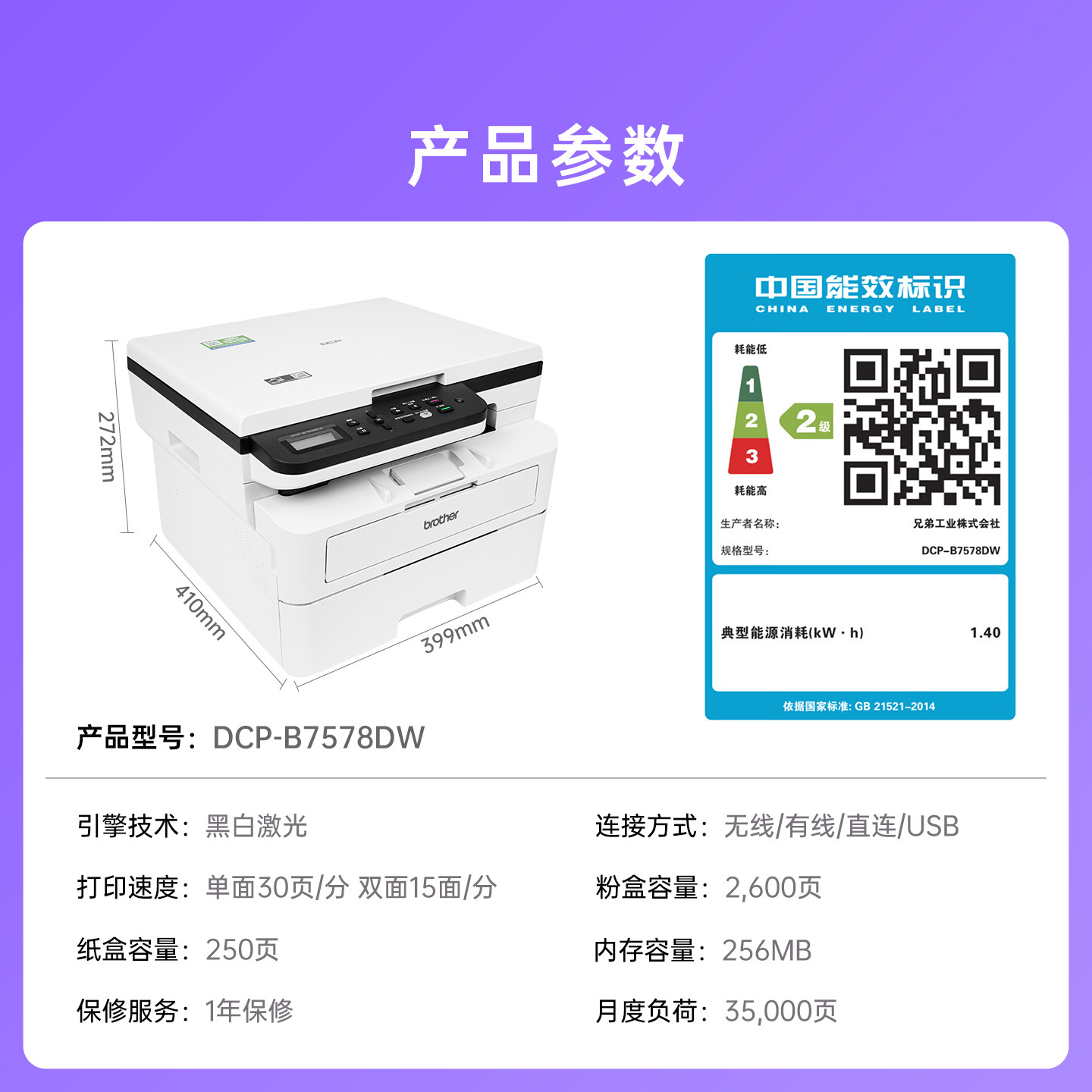 兄弟DCP-B7548W激光打印机复印机扫描一体机手机无线wifi网络自动双面打印高速办公家用多功能A4 7578