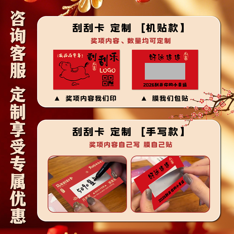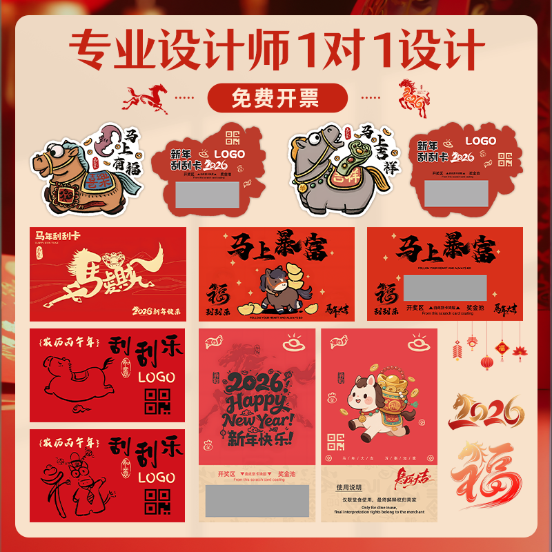 新年刮刮乐定做马年游戏抽奖券公司年会活动中奖励涂层贴刮奖卡片自制彩票红包兑换卷2026春节幸运刮刮卡定制