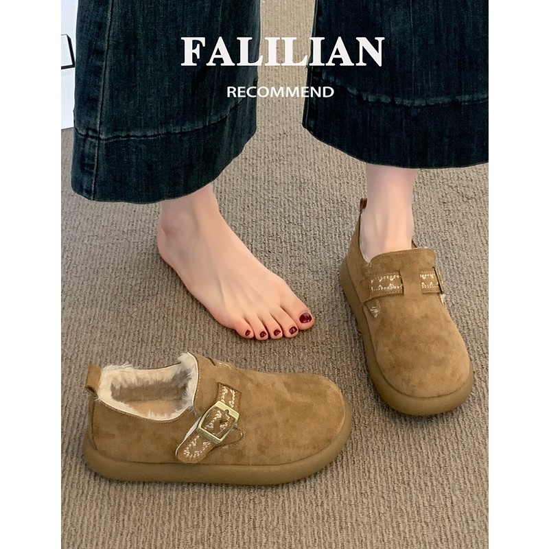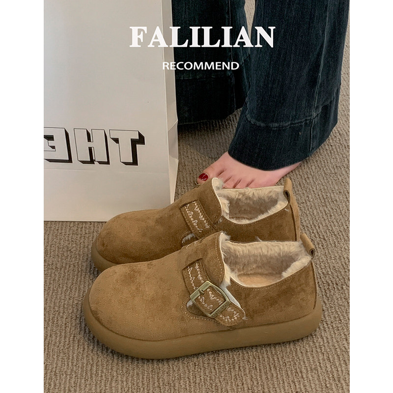 低帮厚底雪地靴女2025新款冬季懒人一脚蹬毛毛棉鞋加绒加厚女鞋子