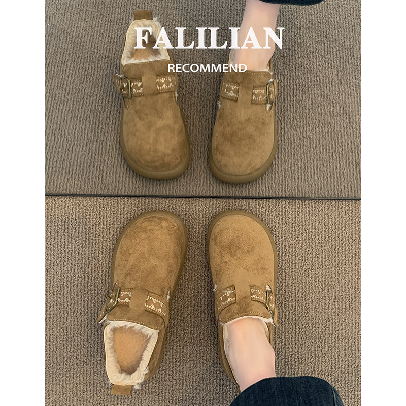加绒勃肯鞋女鞋子2025新款冬季一脚蹬保暖棉鞋休闲百搭爆款雪地靴