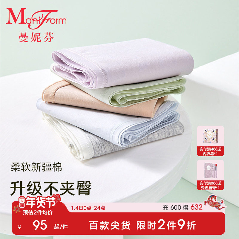 3条装曼妮芬女抗菌红色内裤纯棉内裆短裤舒适中腰三角裤女生底裤