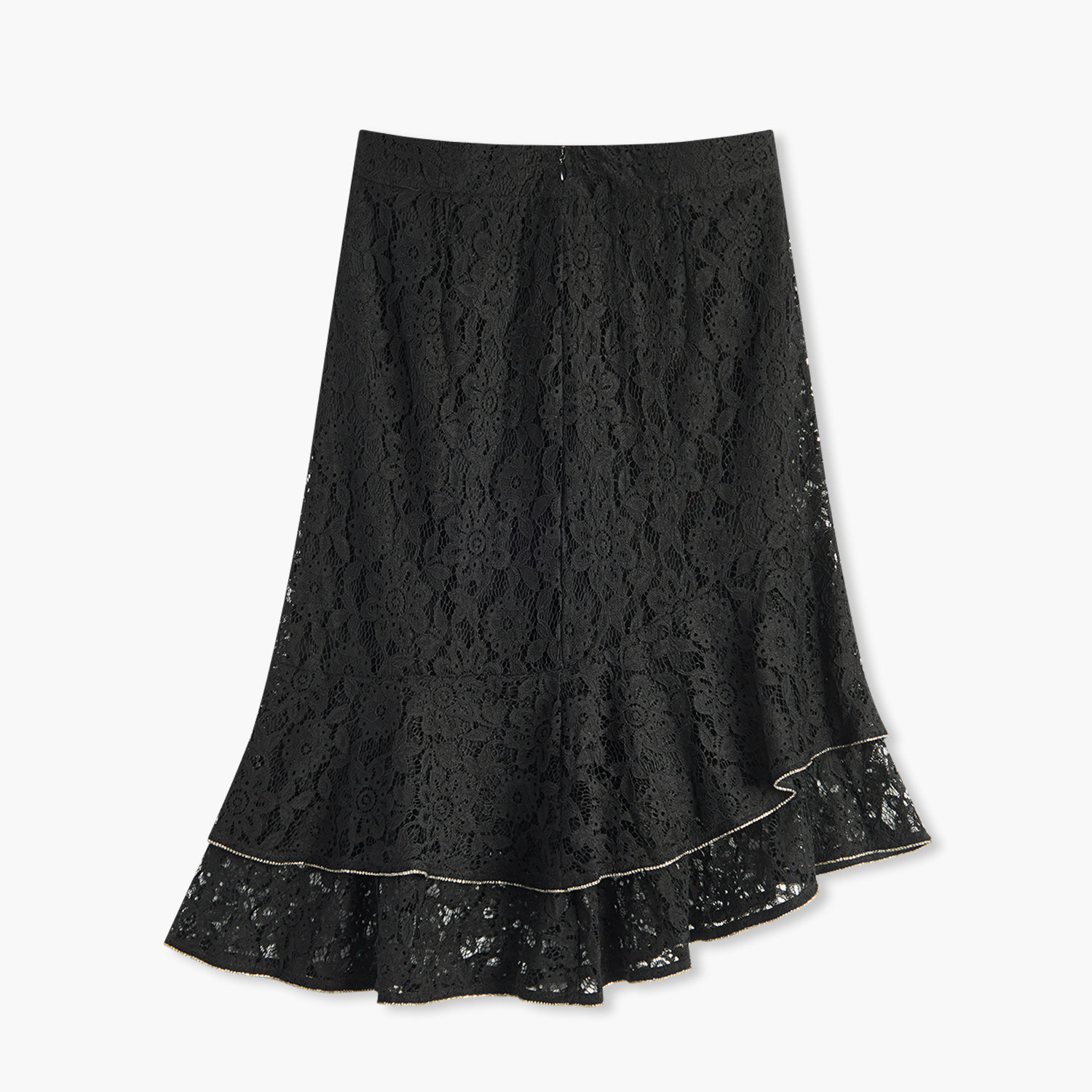 爱居兔黑色鱼尾半身裙女春秋新款中长高腰蕾丝包臀裙单裙