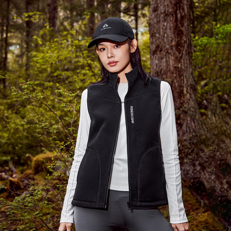 拓路者秋冬季摇粒绒马甲女户外保暖抓绒马甲立领修身无袖加绒背心