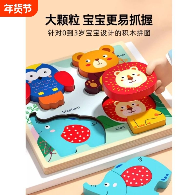 4合1立体拼图积木蒙氏早教配对板宝宝婴幼儿童0到3岁男孩益智玩具