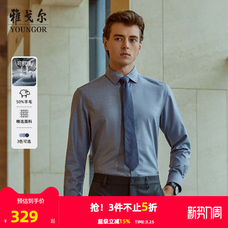 【50%绵羊毛可机洗】雅戈尔官方秋冬新品商务休闲通勤长袖衬衫男