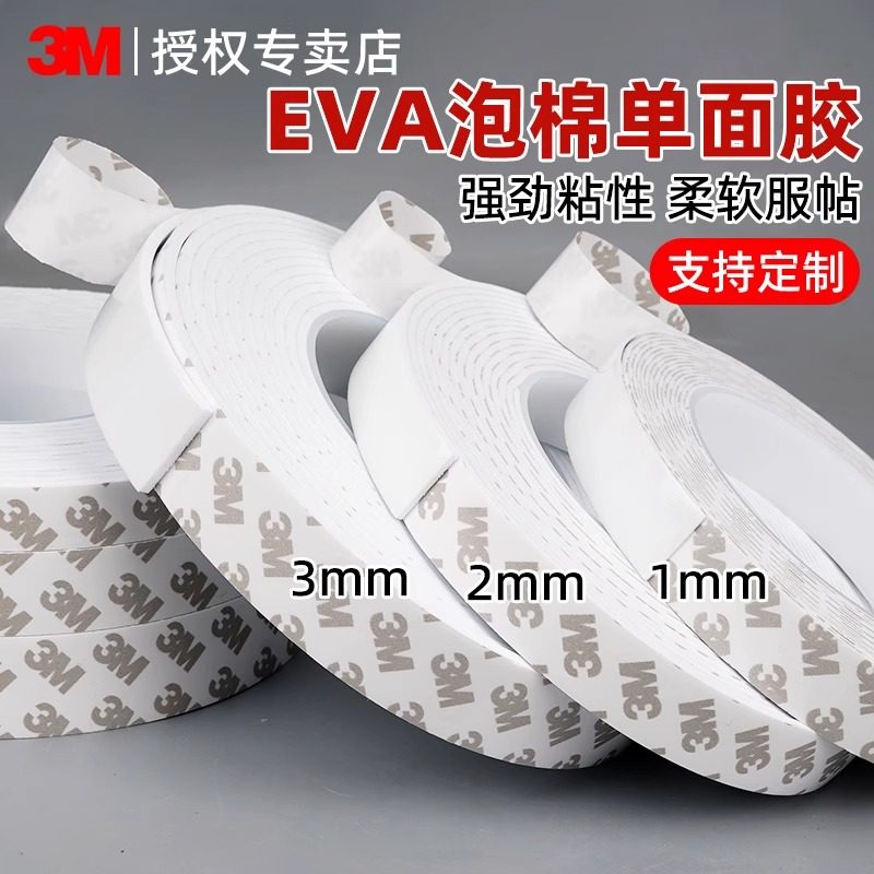 3M55230单面加厚泡棉胶带泡沫EVA海绵胶强力白色密封防震隔音防撞