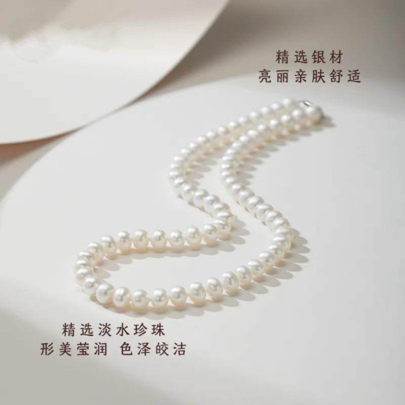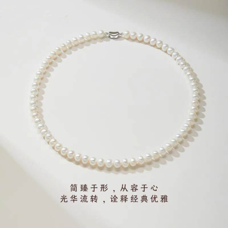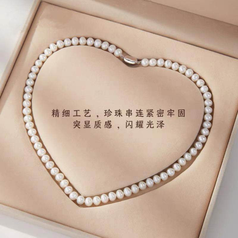 诸暨淡水珍珠项链时尚气质强光S925银元宝扣全珠链轻奢近圆女颈链
