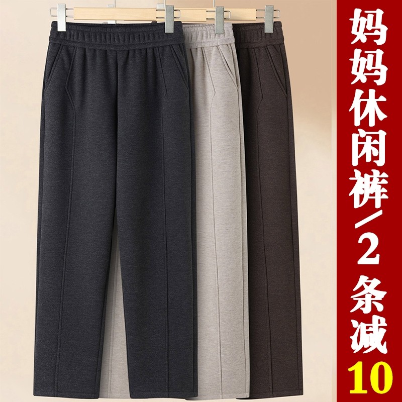 妈妈裤子春秋款松紧高腰弹力中老年女裤宽松大码直筒奶奶加绒长裤