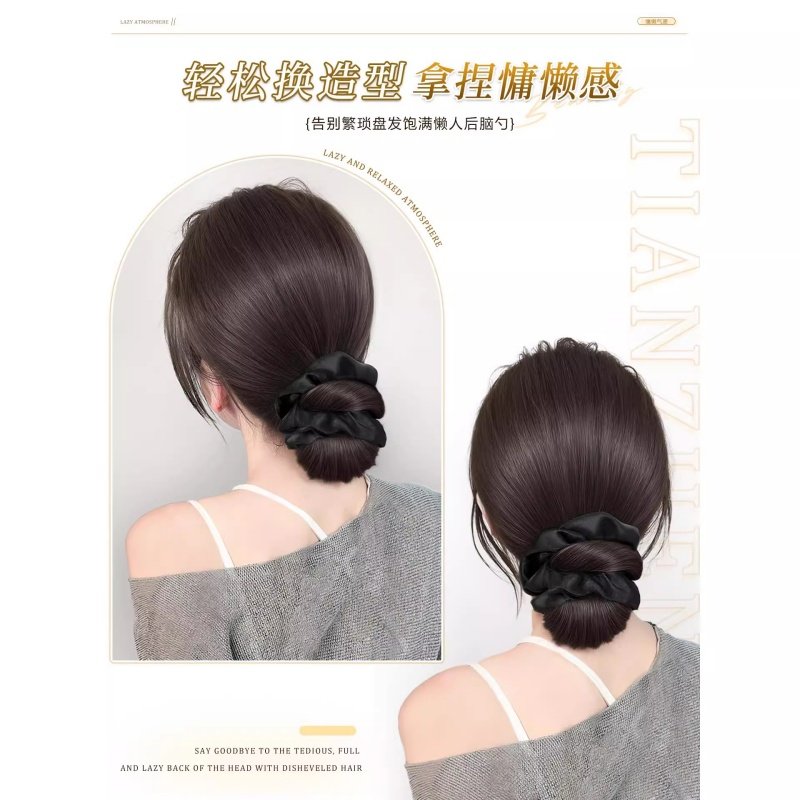低扎丸子头假发鸡毛头抓夹盘发发包慵懒感造型头饰自然蓬松后脑勺