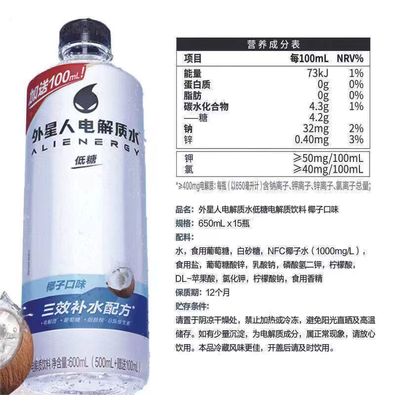 元气森林外星人电解质水600ml*15瓶青柠椰子0糖健身电解质饮料