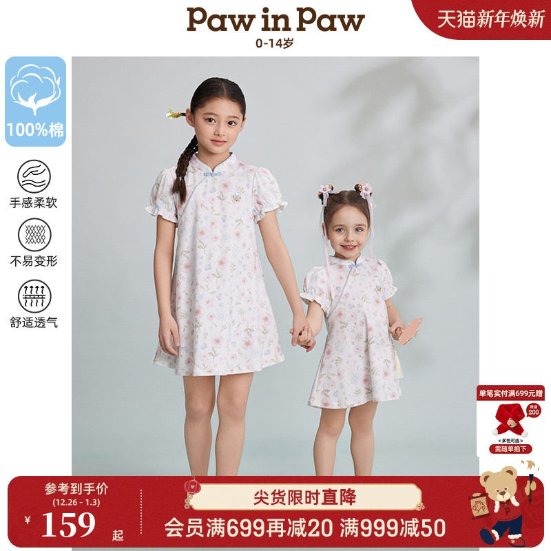 PawinPaw卡通小熊童装25年春夏新款女童国风旗袍节日礼服连衣裙