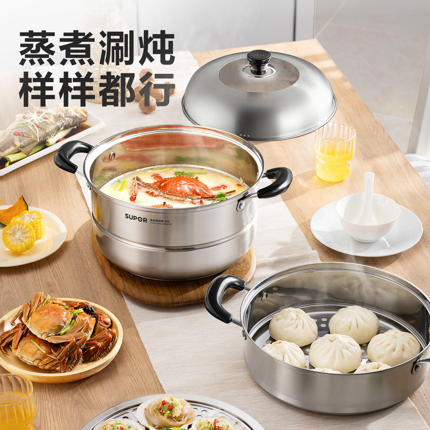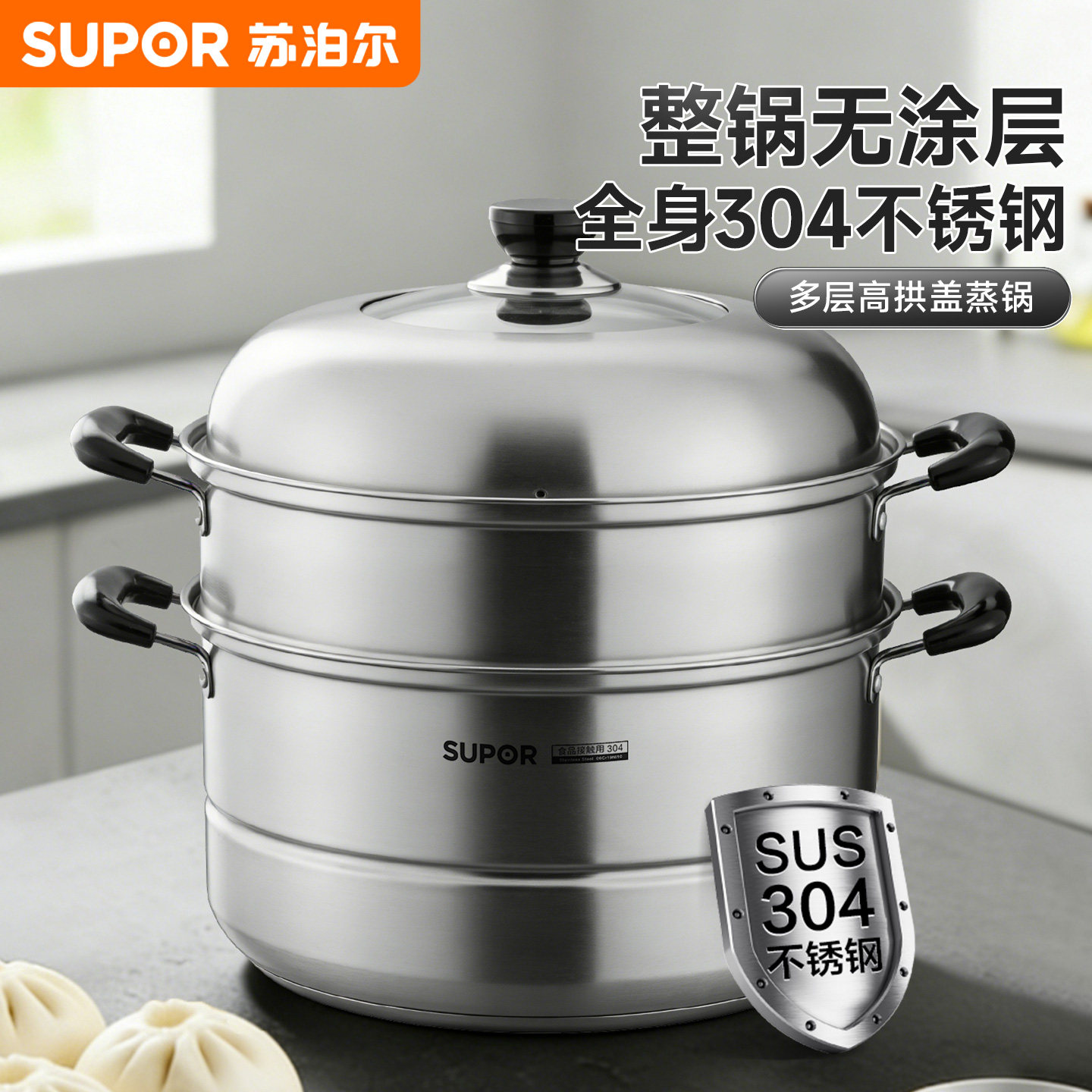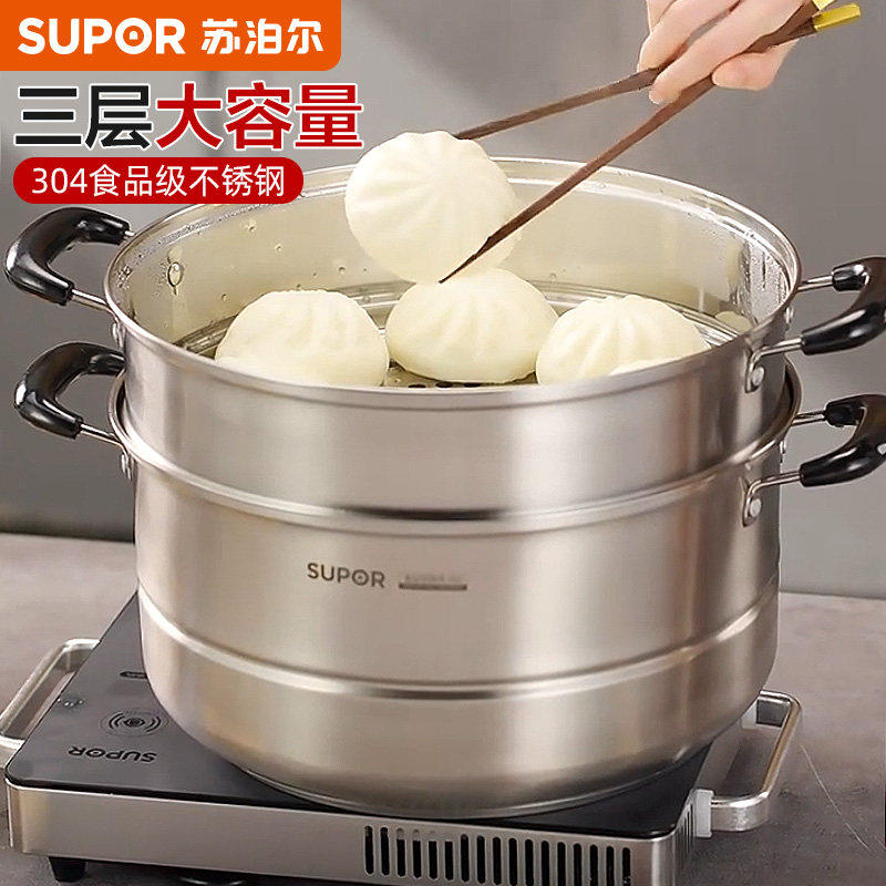 苏泊尔蒸锅家用304不锈钢蒸煮炖多层大蒸笼馒头蒸鱼锅燃气电磁炉