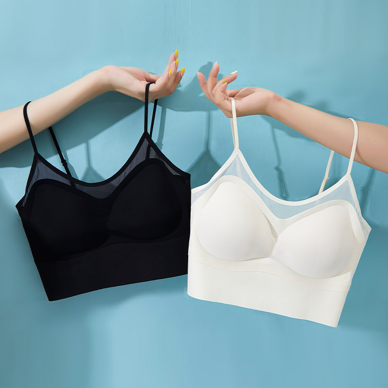无痕美背抹胸内衣女小胸聚拢可外漏细肩带一体固定杯背心式文胸罩