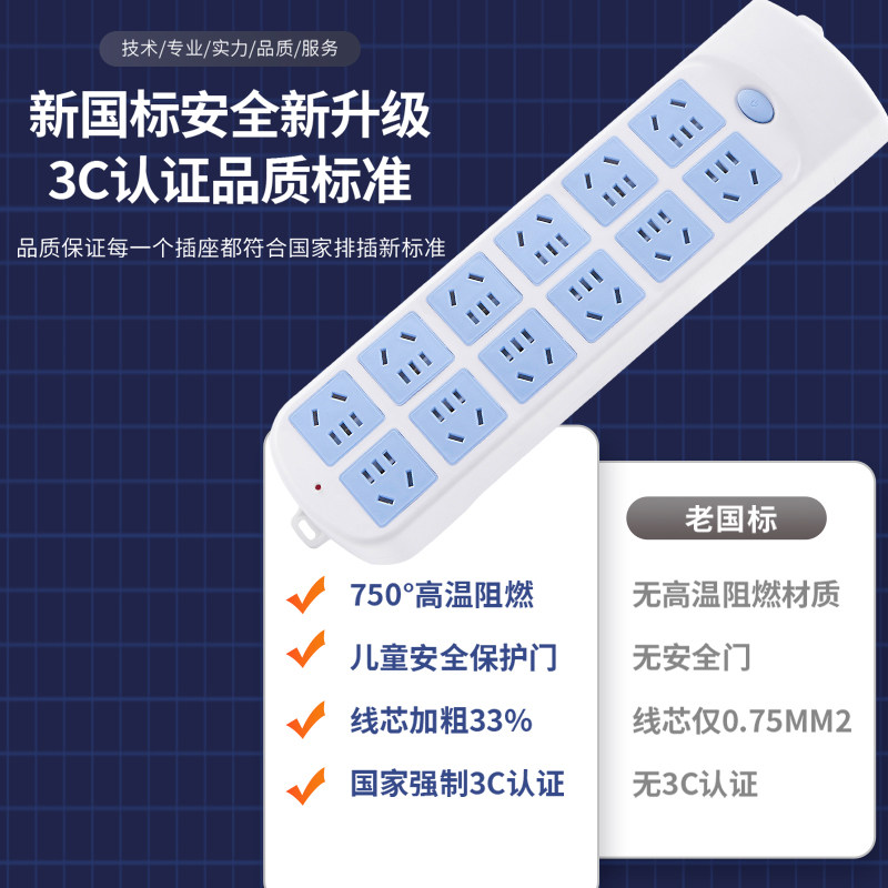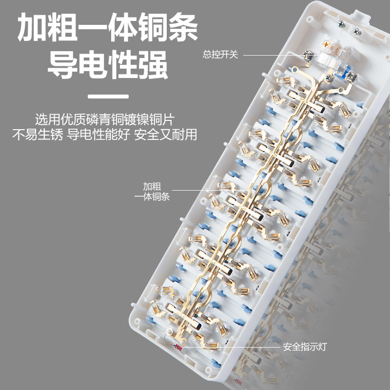插座带长线家用办公多功能多插位插板宿舍插排拖接线板纯铜排插