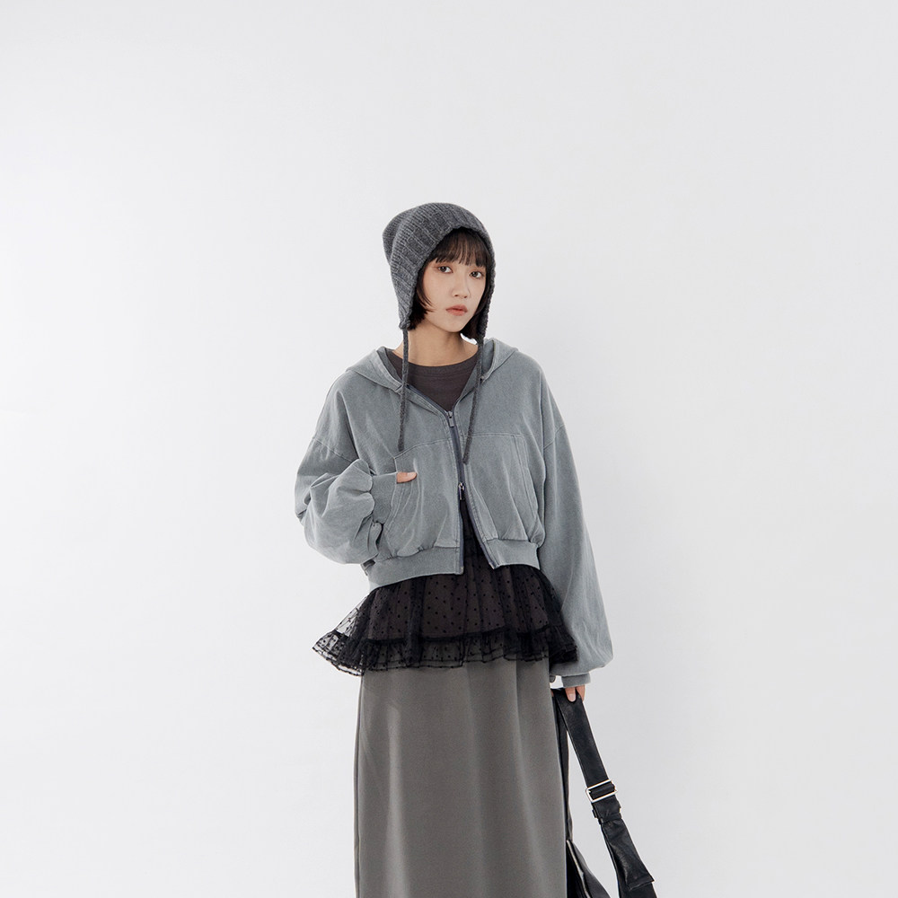 三福卫衣开衫2025新款秋季连帽情侣款外套宽松慵懒风灰色上衣女装