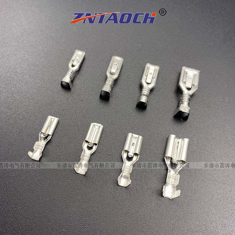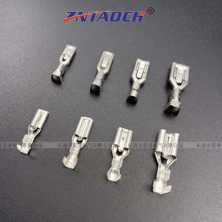 带锁2.83.84.86.3插簧铜接插件母插片母头插拔式冷压接线端子
