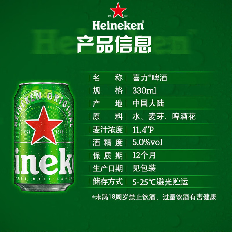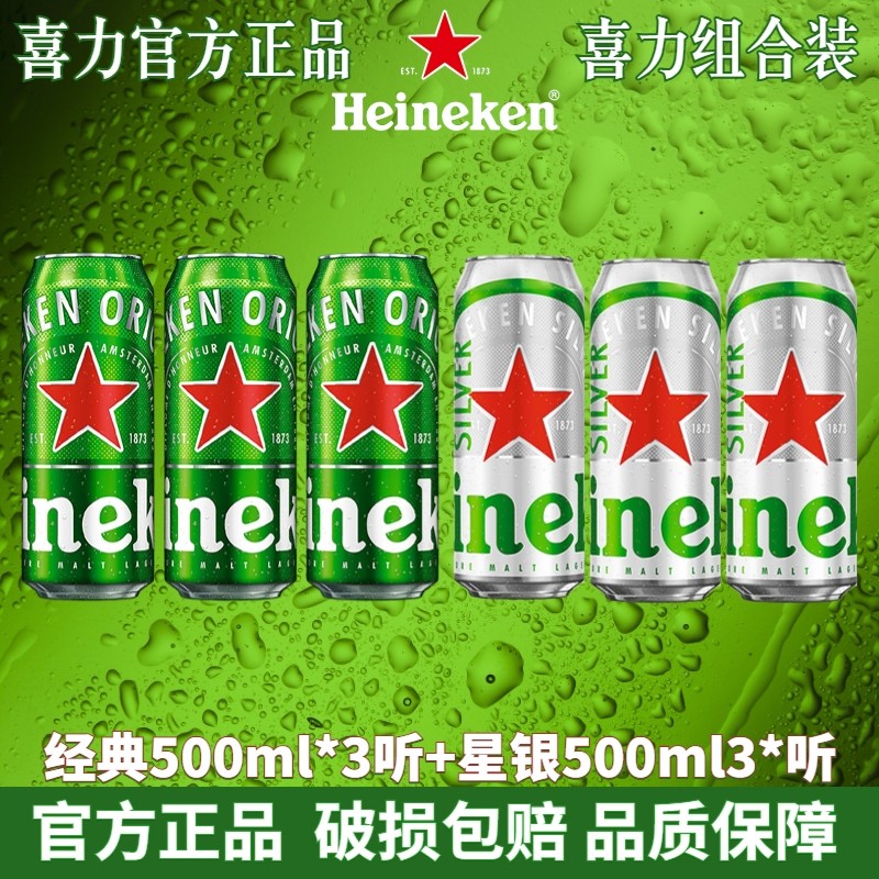 Heineken/喜力经典啤酒500ml罐装6听星银248ml铝罐拉格正品全麦