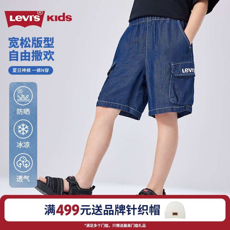 【天丝软牛仔裤】Levis儿童短裤男童2025夏季五分裤透气运动童装