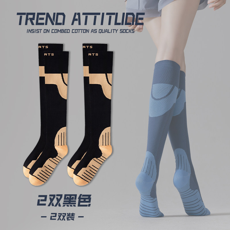 专业运动压力袜子女压缩小腿跑步专用瘦腿跳绳弹力骑行瑜伽长筒