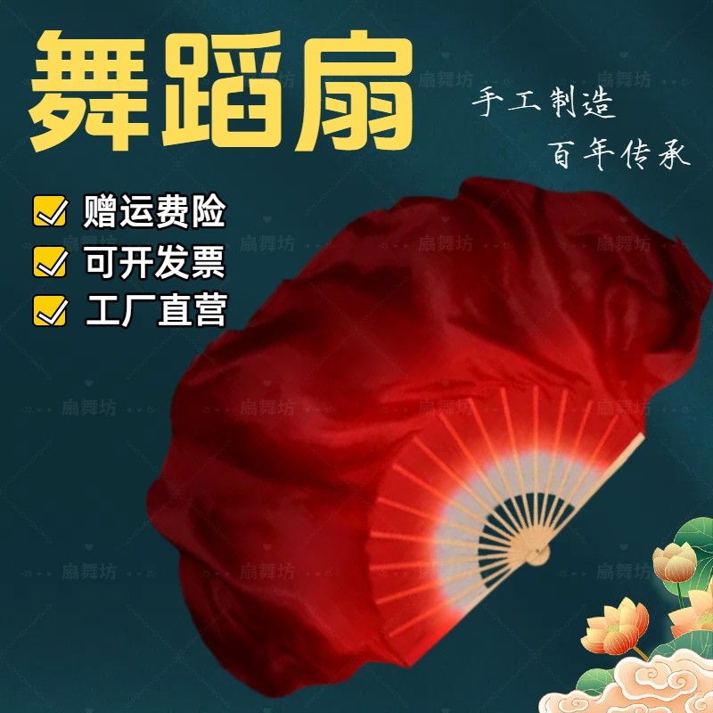 舞蹈扇子双面万疆大酒红深红色秧歌古典舞扇广场跳舞仿真丝