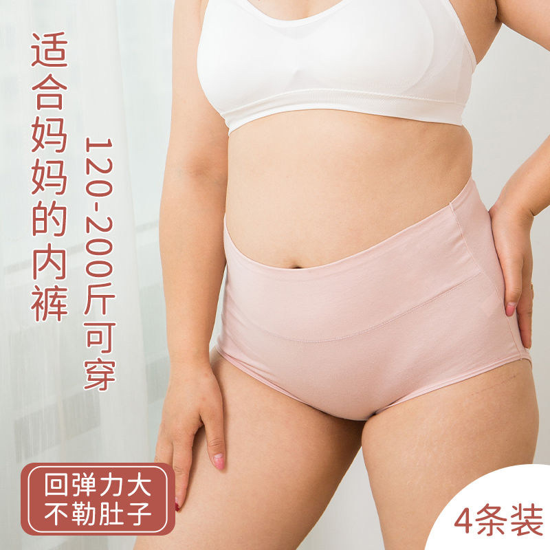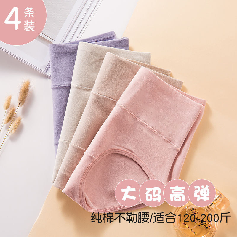 4条装女士内裤女高腰透气全棉裆纯色提臀收腹胖mm中老年三角内裤