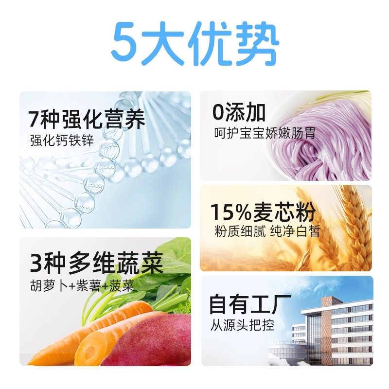 谷妈咪7:1营养强化多彩宝宝面条无添加盐钙铁锌果蔬线面儿童主食